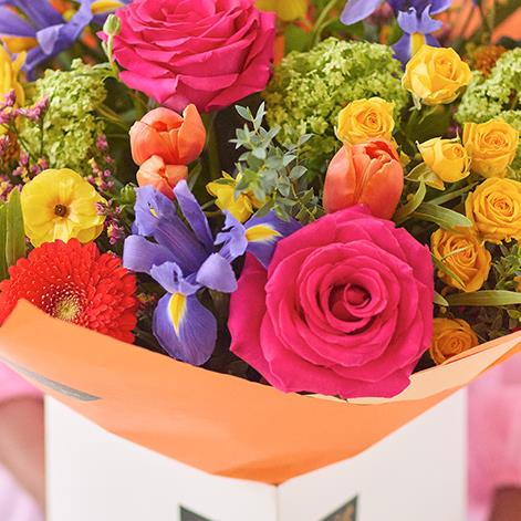 A gorgeous bouquet of vibrant fresh flowers, expertly arranged by a local florist.