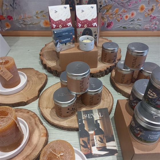 St Eval candles , handwash , handcream and tea lights, many scents to choose from including Walled Garden, sacred forest, winter thyme and hawthorne and berries. give us a cal or po in to see selection.